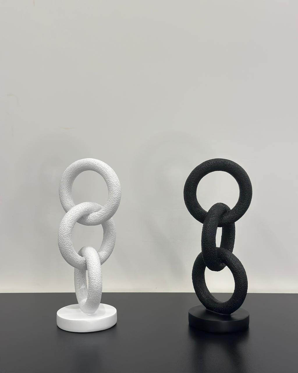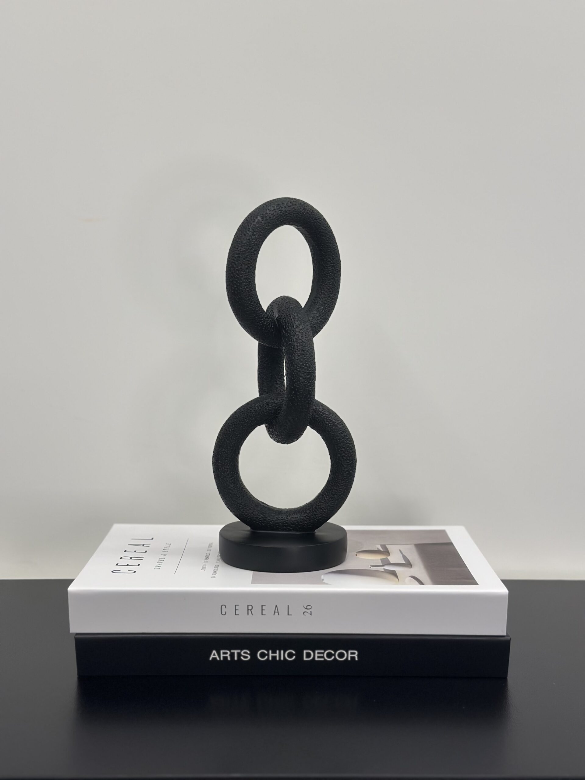 Sleek and sculptural, this standing resin chain features interlocking round links anchored on a solid base. A bold statement of connection and strength, it adds a touch of modern sophistication to consoles, shelves, or office spaces.