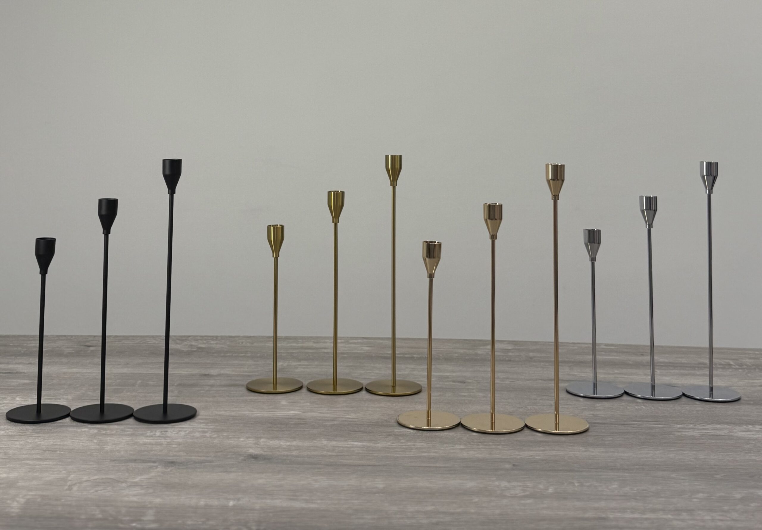 High-quality stainless steel candle holders available in 4 elegant colors — black, gold, matte gold, and silver.