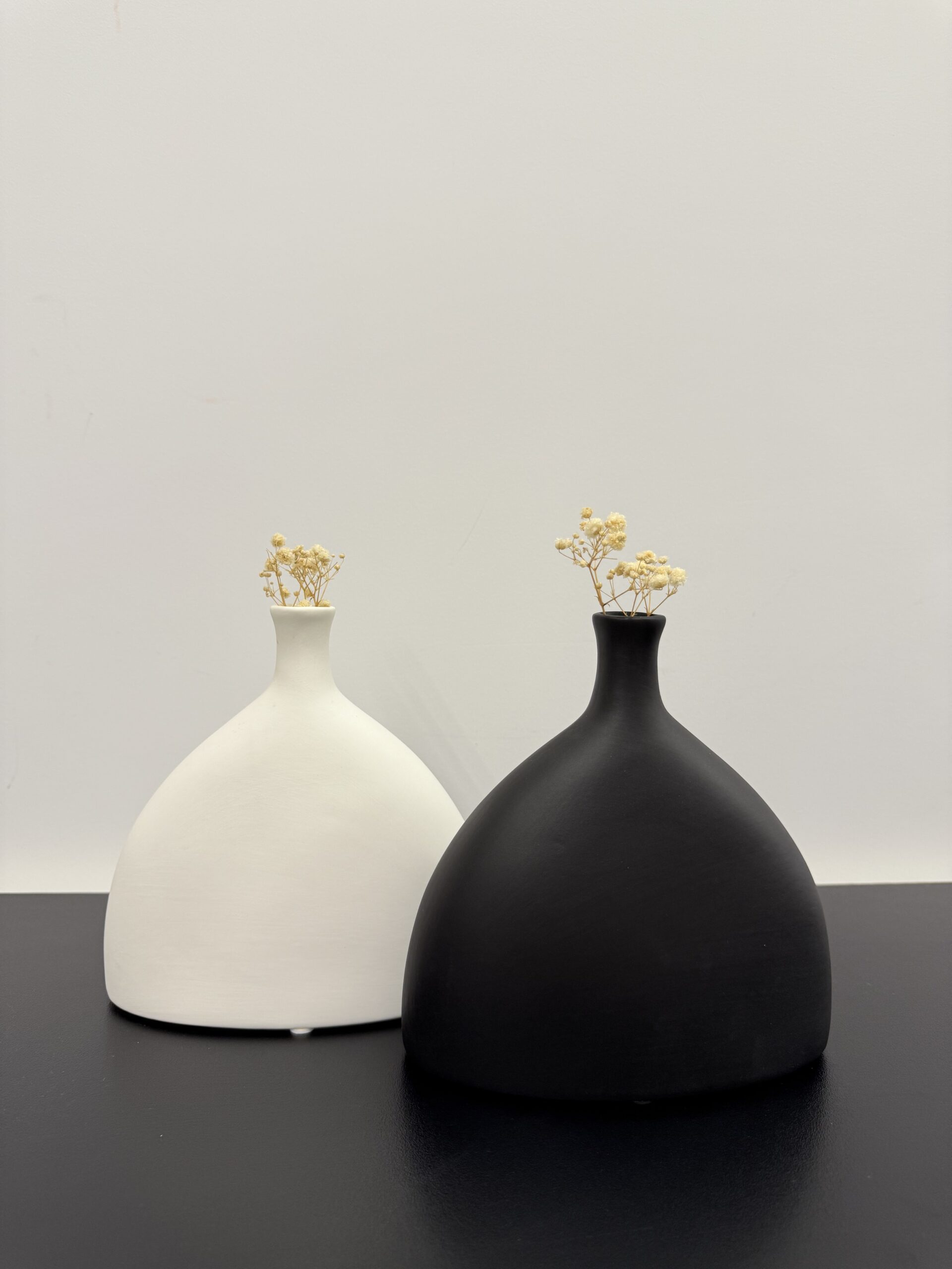 Elevate your space with this elegant, handcrafted ceramic vase. Featuring a smooth and a unique dome-shaped body with a narrow neck, it’s perfect for modern and minimalist interiors. Ideal as a standalone art piece or for displaying dried florals.