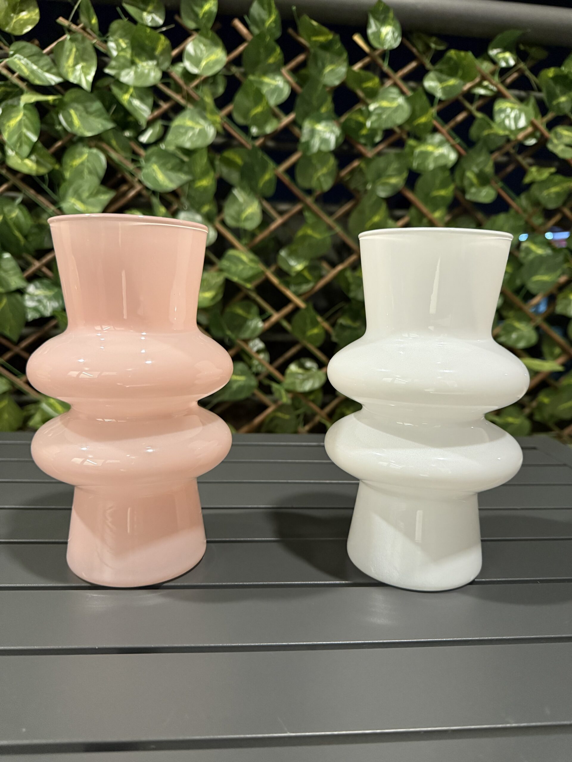 Stylish and eye-catching, this double bubble glass vase features two rounded spheres stacked vertically, creating a playful yet elegant silhouette. Crafted from clear or tinted glass, it’s perfect as a modern accent piece or for showcasing single-stem flowers and greenery.