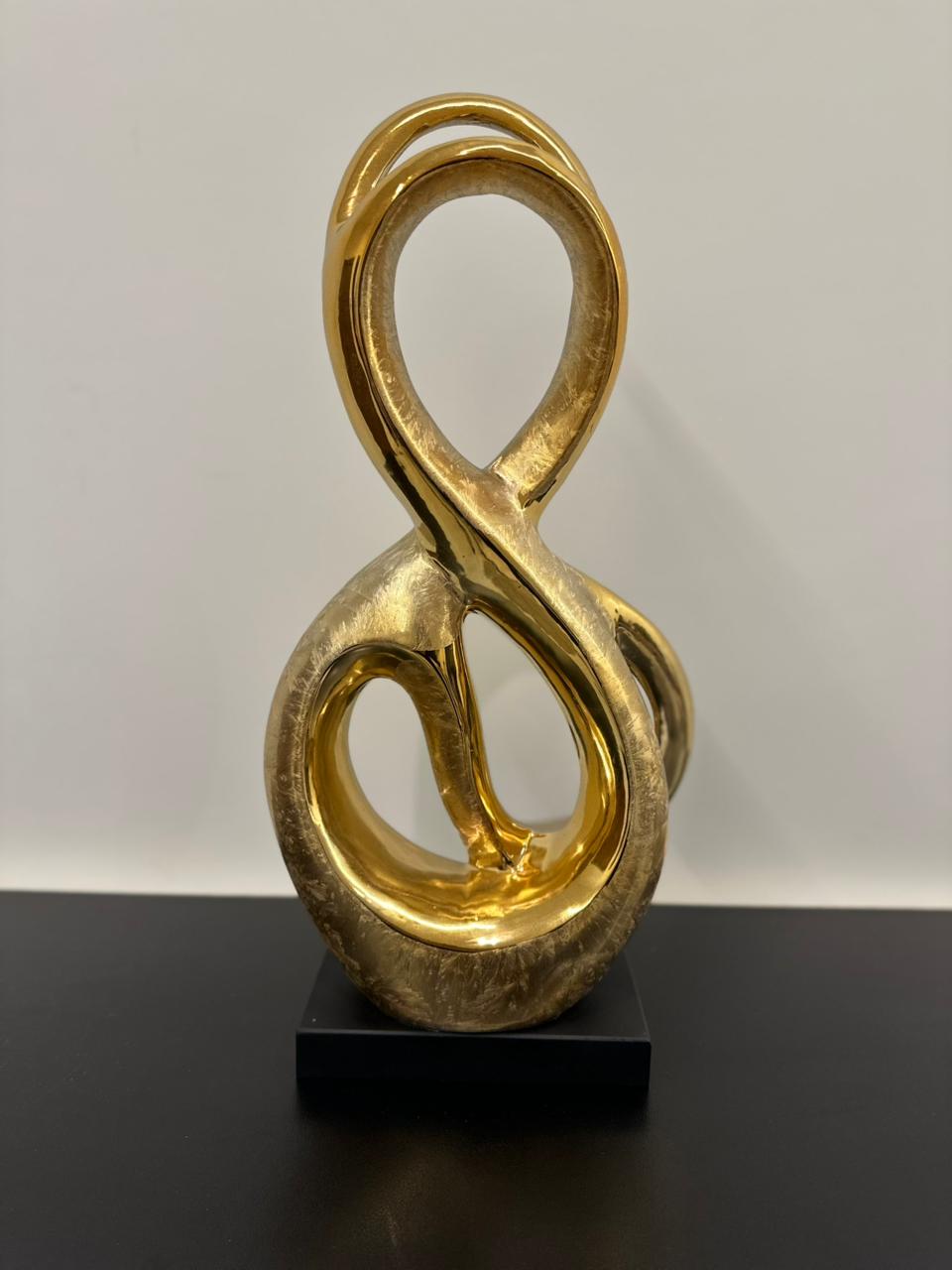 An elegant resin ornament with a flowing, music note-inspired design in a glossy gold finish. A stylish piece that brings rhythm and sophistication to any modern space.