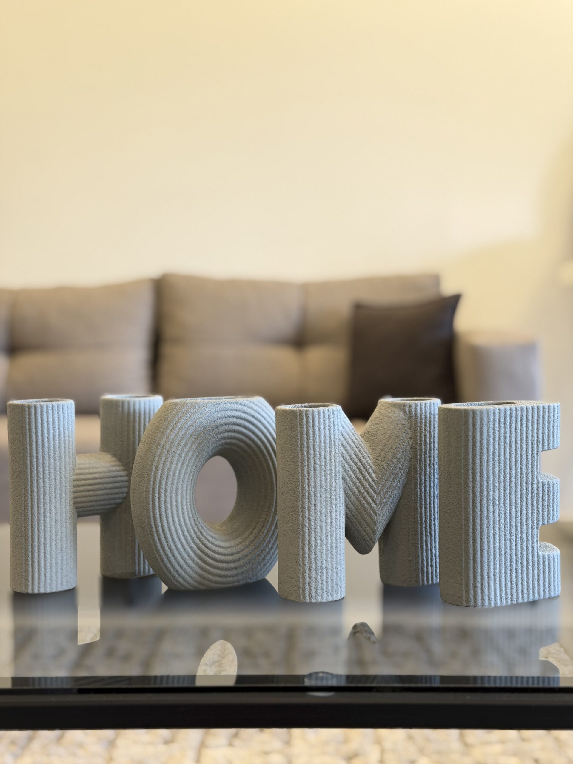 A modern décor ceramic piece featuring textured “HOME” letters designed to add warmth and character to your space. Its unique finish and clean design make it perfect for living rooms, shelves, or coffee tables.