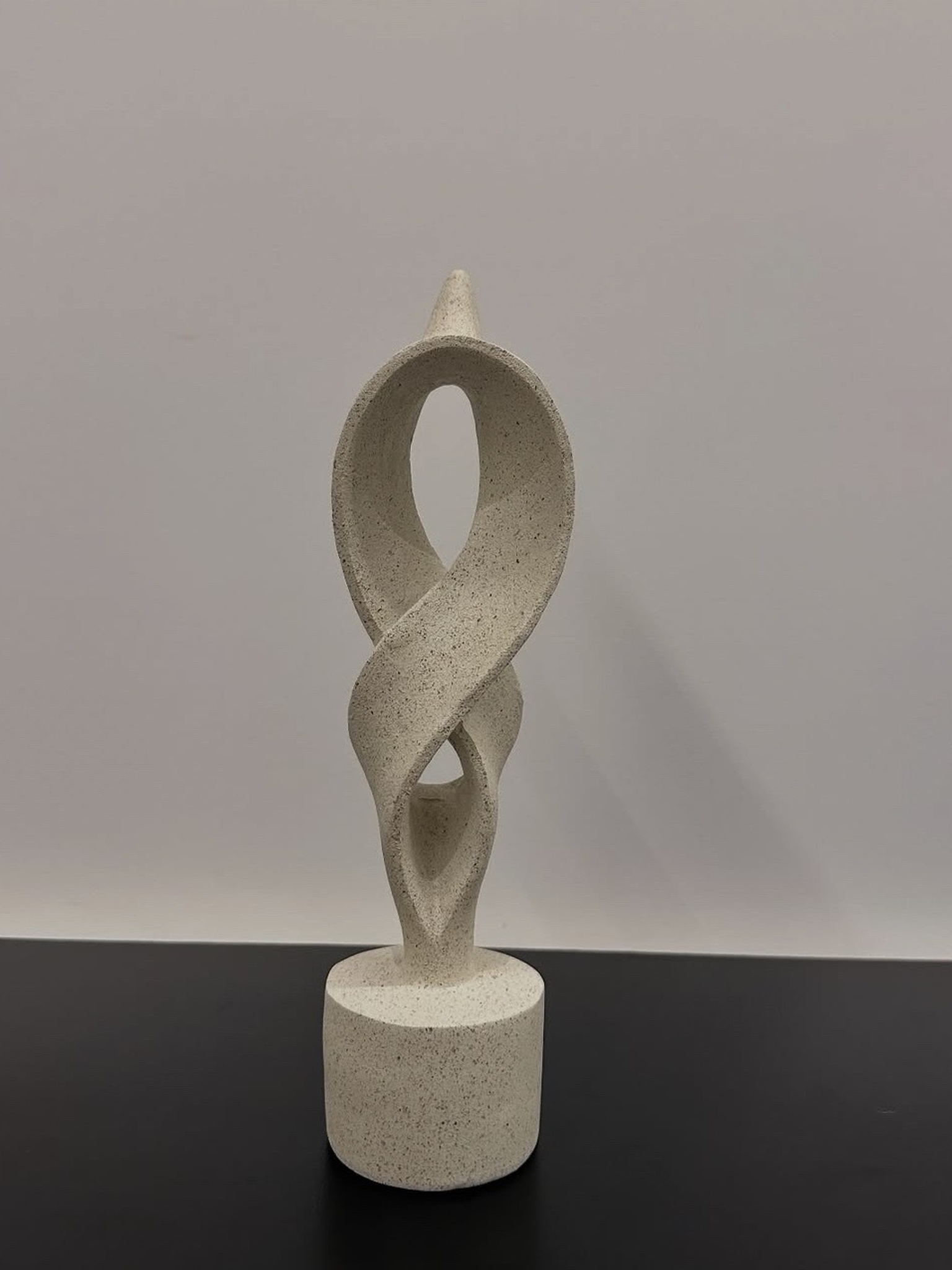 Elegant, handcrafted stone ornament featuring a twisted infinity design, perfect for adding a modern artistic touch to your home or office décor.