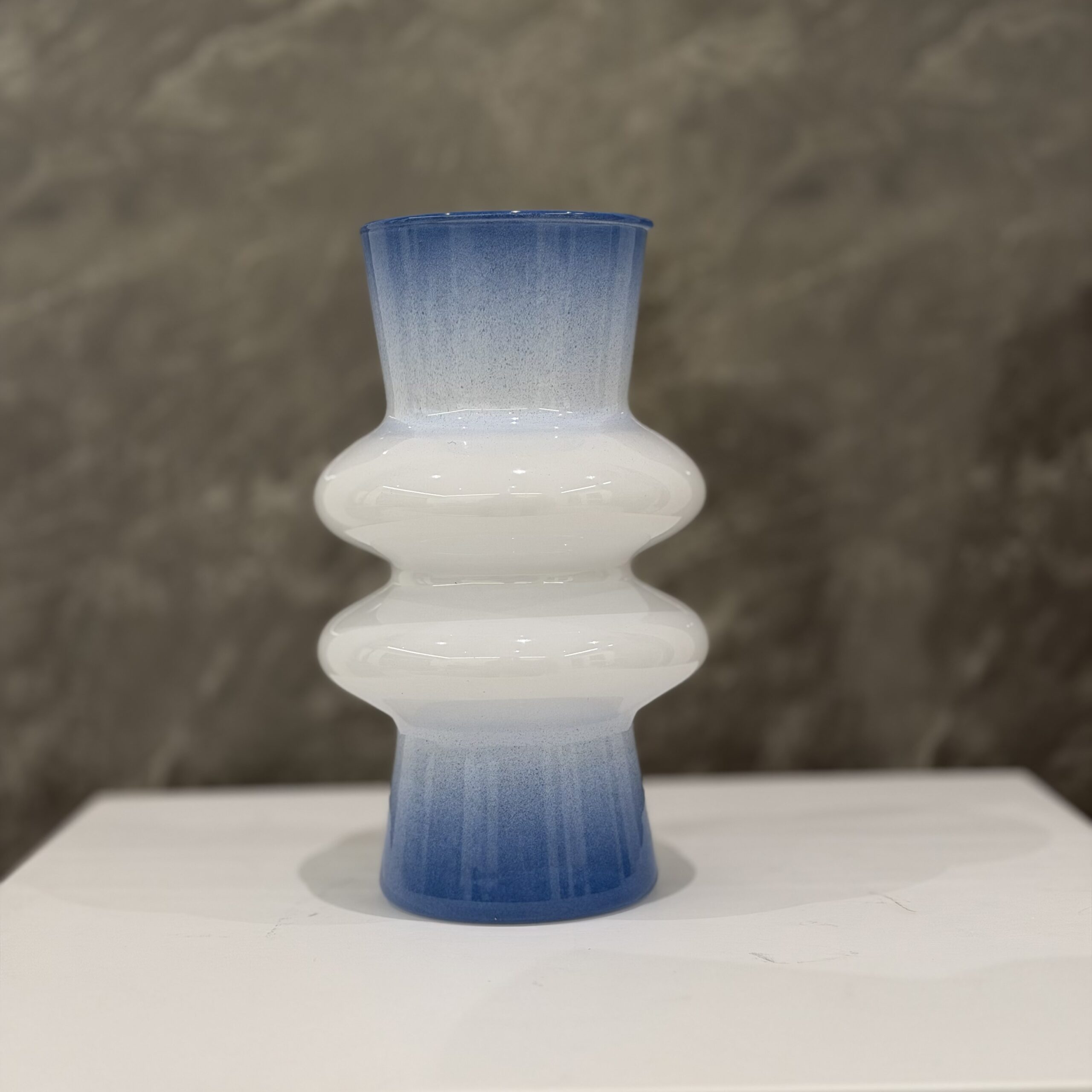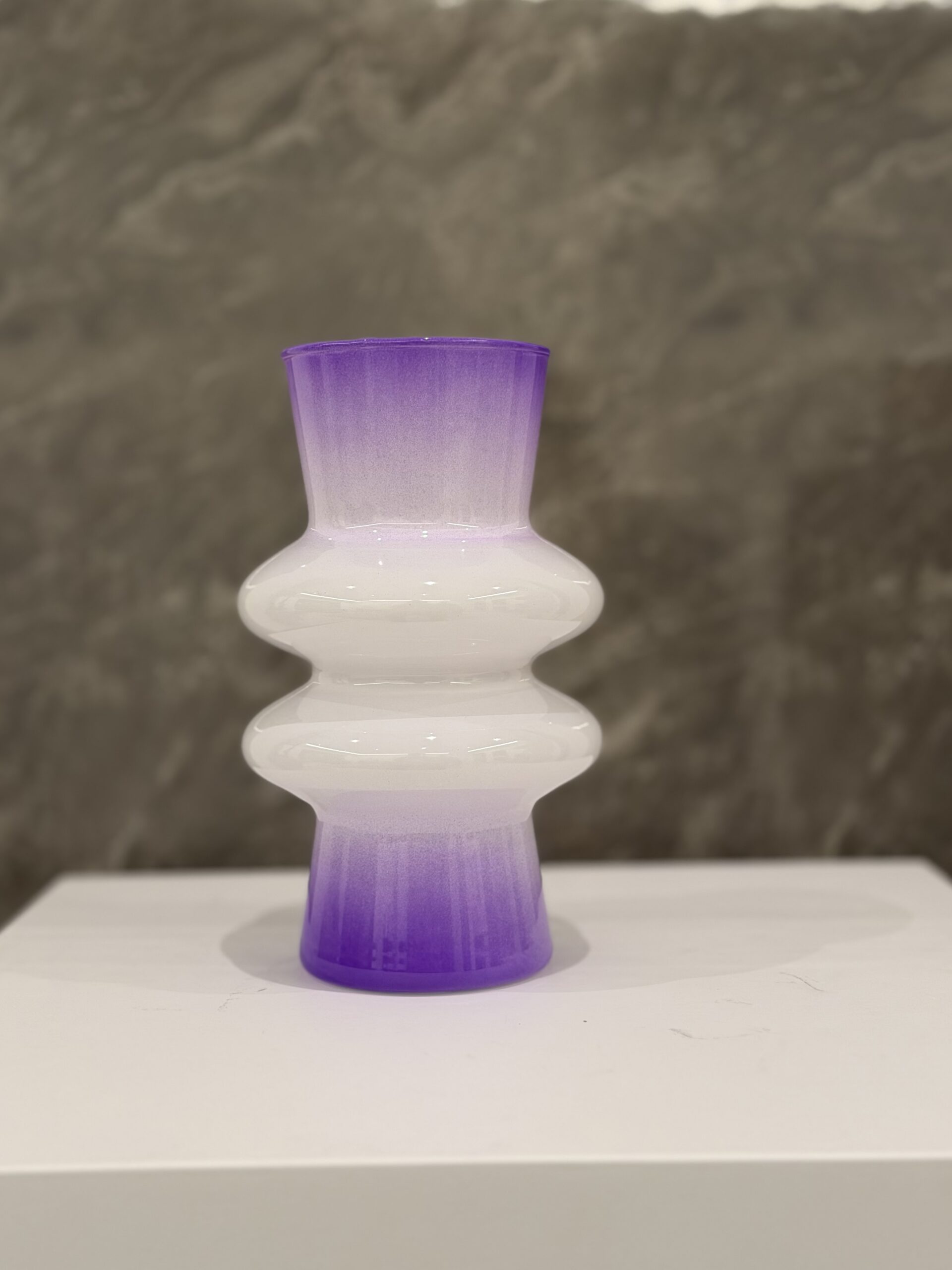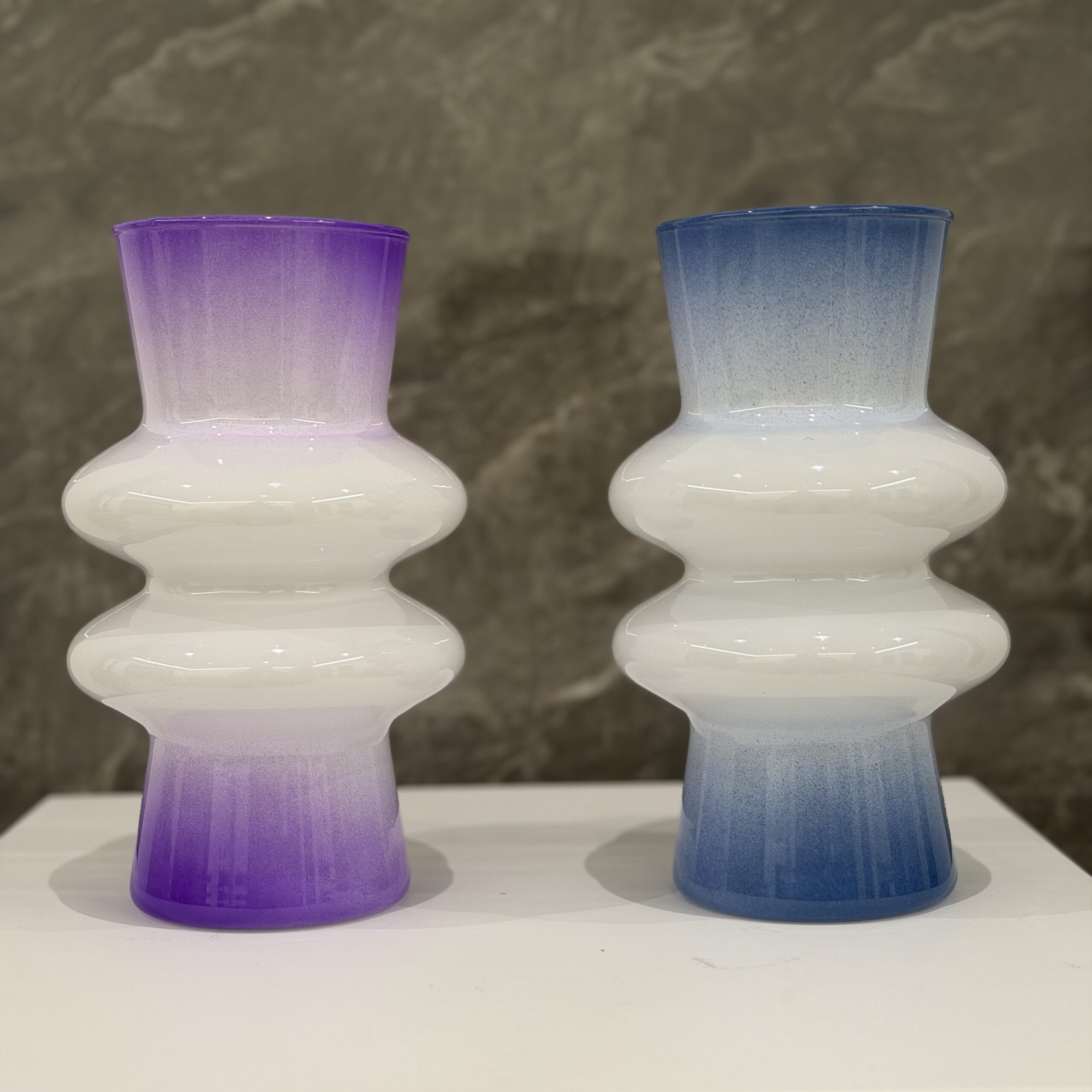 A unique high-quality glass vase featuring a soft gradient finish, available in purple and blue.