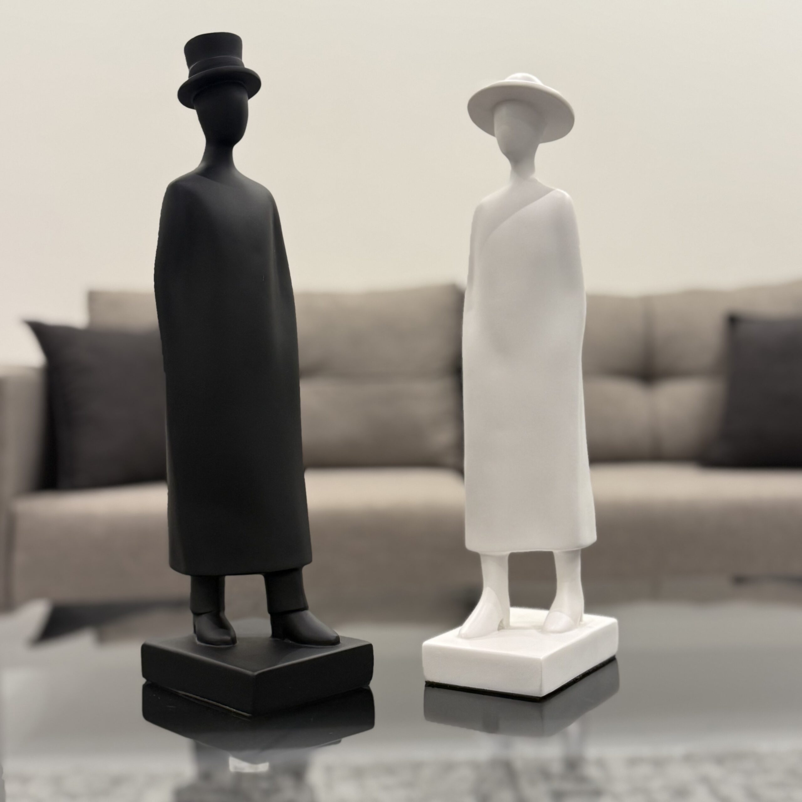 A sleek resin sculpture of a man wearing a cap, perfect for modern home décor. Available in black.