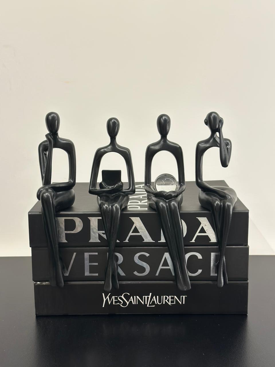 A captivating set of four resin figures, each in a relaxed seated pose—one thoughtfully resting, another absorbed in reading, a third holding a crystal ball, and the last engaged in a phone call. Perfect for adding character and storytelling to any modern space.