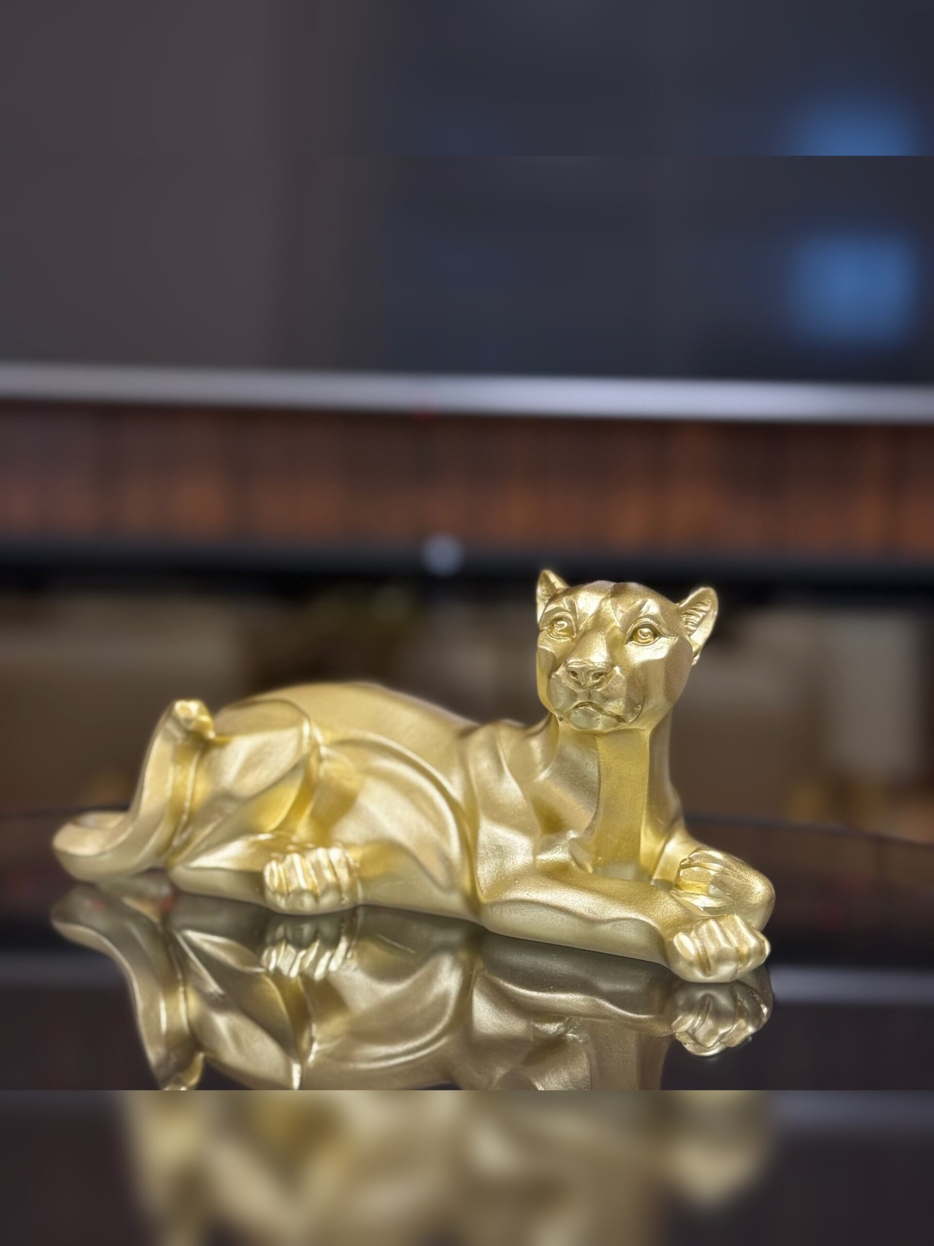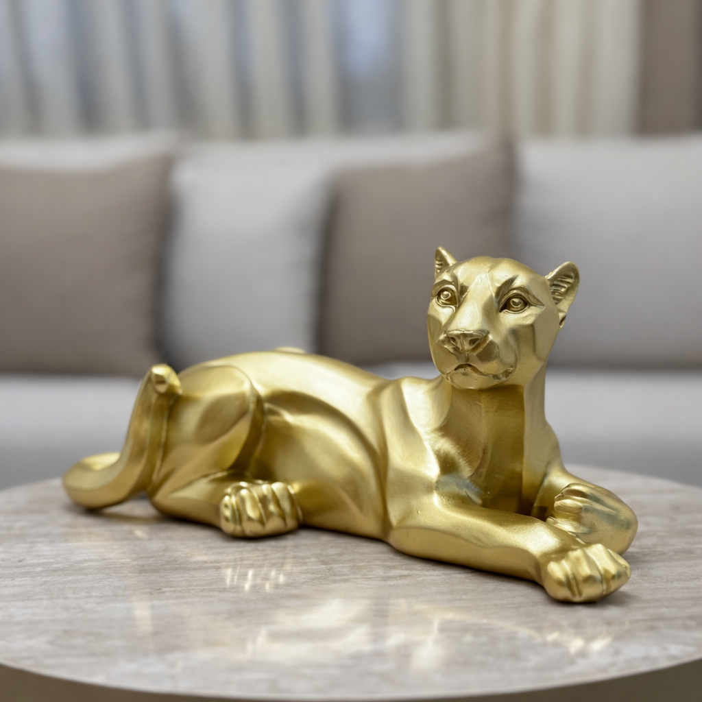 A striking tiger sculpture finished in refined gold beads, symbolizing power, confidence, and elegance. A bold accent piece that elevates modern and luxury interiors.