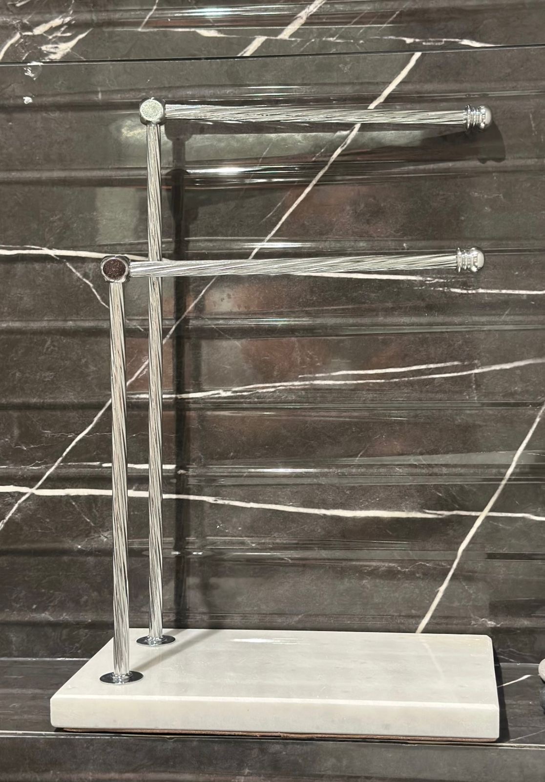 A sleek towel stand with a sturdy, space-saving design — practical, stylish, and perfect for keeping towels neatly organized and within reach.