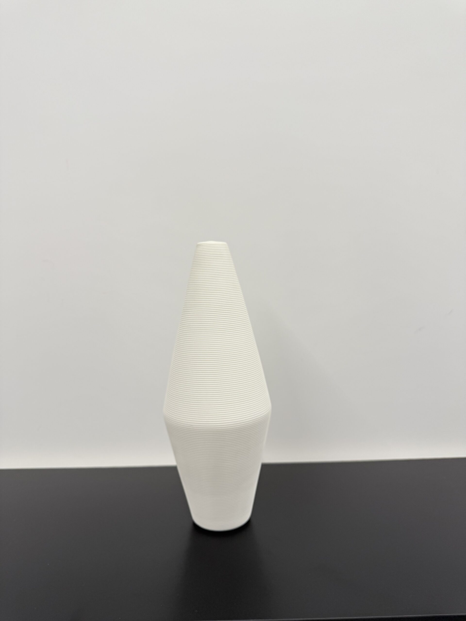 This elegant ceramic vase features a clean, tapered silhouette with subtle horizontal stripe detailing for added texture. Its minimalist white finish makes it a versatile decor piece, perfect for modern interiors and floral arrangements.