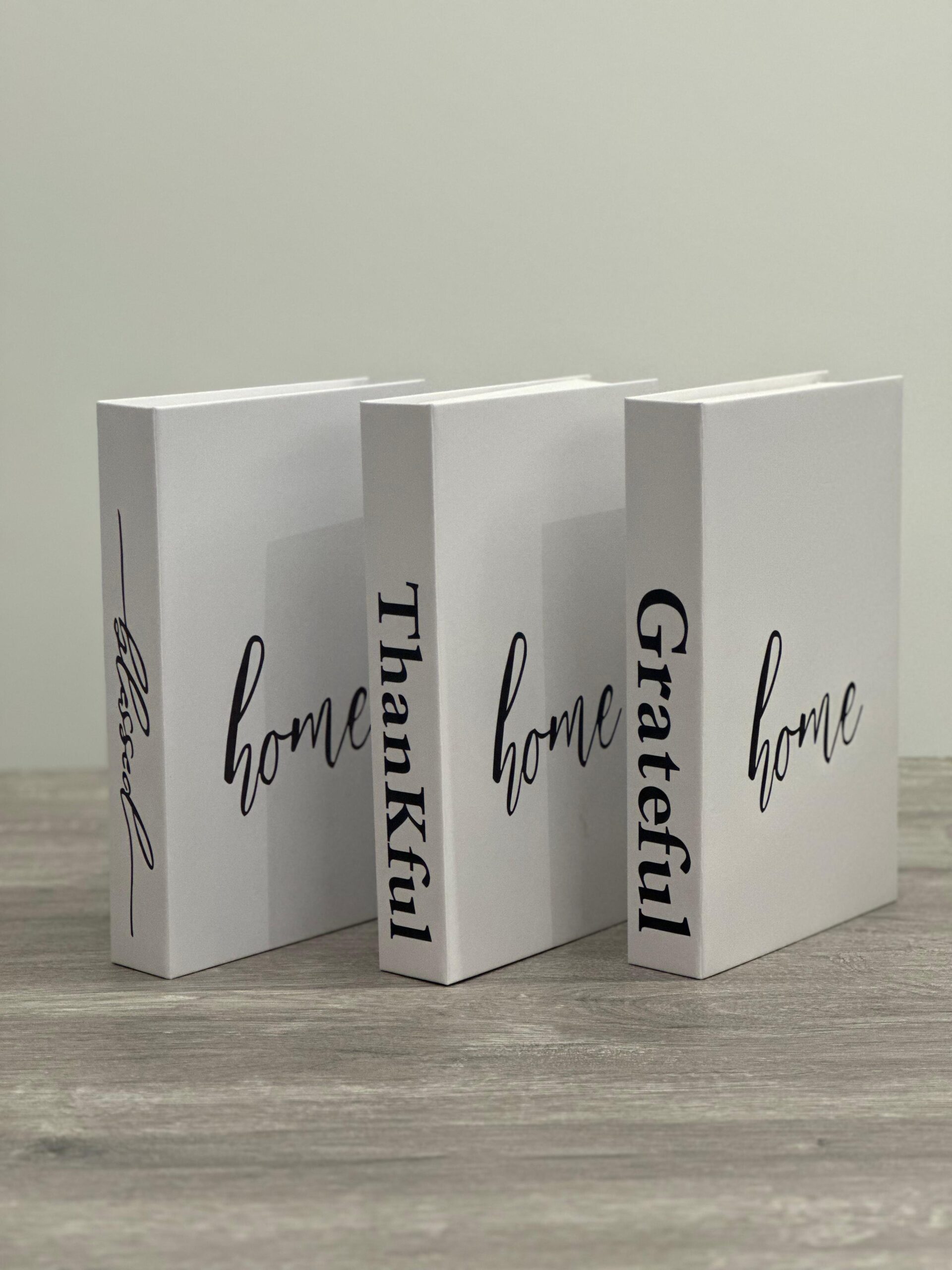Rooted in the warmth of home, this trio of decorative books — Grateful, Blessed, and Thankful — captures the quiet joys of everyday life. Together, they reflect a mindful approach to living, honoring the simple moments, deep connections, and heartfelt gratitude that make a house truly a home.